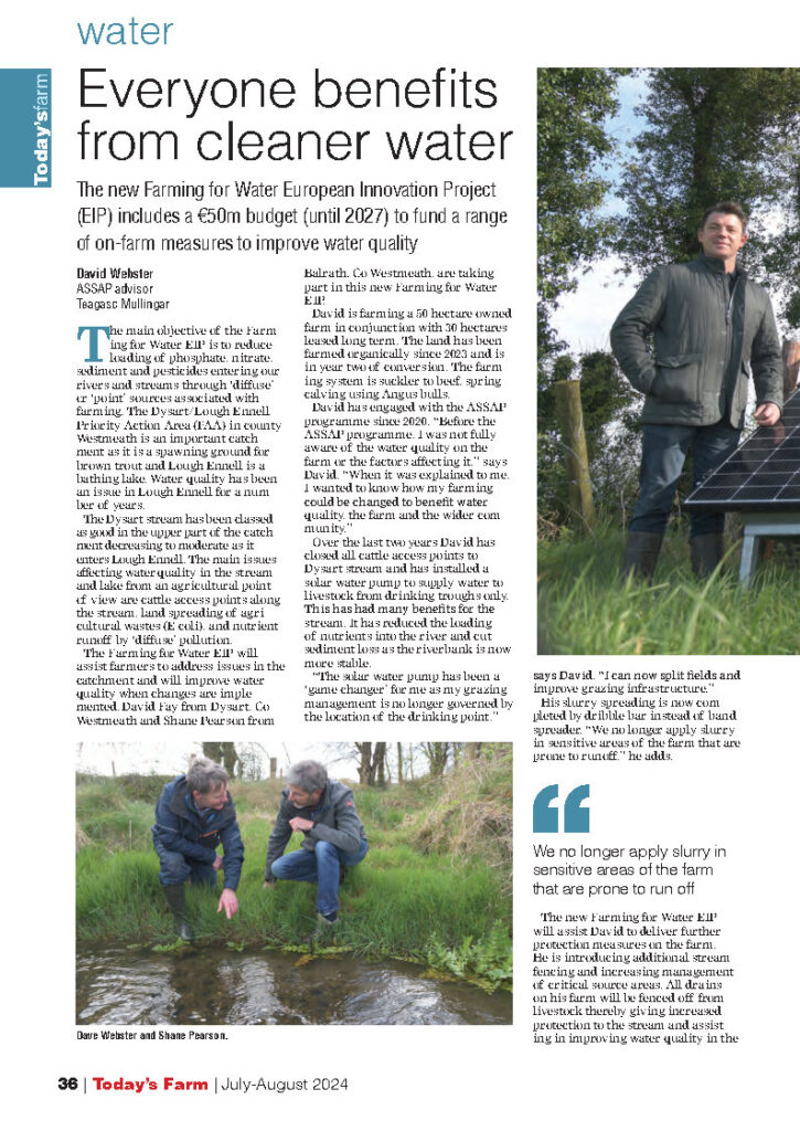 Everyone Benefits from cleaner water: The new Farming for Water European Innovation Project (EIP), includes a €50m budget (until 2027) to fund a range of on-farm measures to improve water quality, writes David Webster, ASSAP Advisor, Teagasc Mullingar