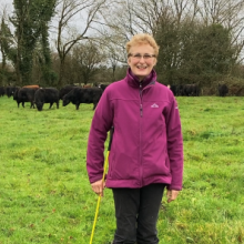 Kay O’Sullivan is organically farming 63.2ha, including 11.16ha forestry. The soil type is a free draining loam. She runs a spring calving suckler to beef system, along with a lowland ewe system. Kay has increased the suckler cow numbers to 30 cows. The cows are all bred to 100%AI, typically to pedigree Angus bulls. Male offspring are overwintered on redstart for their first winter and finished at 18 to 20 months off a multispecies sward. Surplus heifers are often sold for breeding.