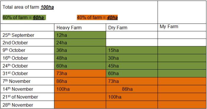 On the drier farms we start a week later as we won’t run into the same issues. So if your land is all fairly dry today you should have 45% of your farm closed. If you have mixed land, you will be somewhere in between.