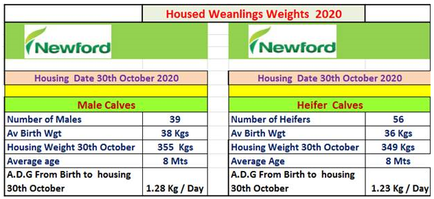 All the weanlings (105) have now been housed. The wet weather last week in the West put an end to the 2020 grazing season on Newford farm