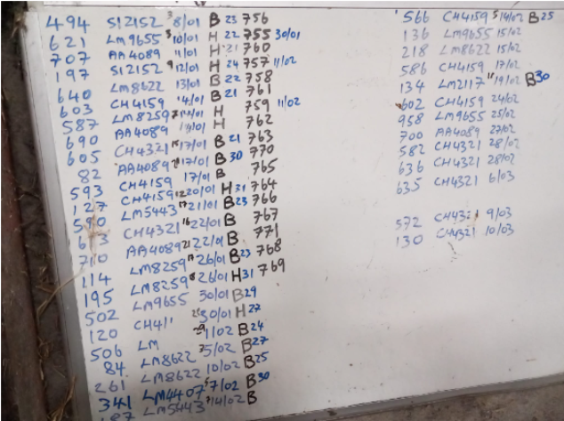 A record of cows colostrum is recorded on a chart in the calving pen area each year (see figure 5). In general colostrum quality is very good on the farm with most cows achieving over 22%. Cows are fed high quality silage and 0.5kg soyabean meal pre calving in order to improve colostrum quality on the farm.