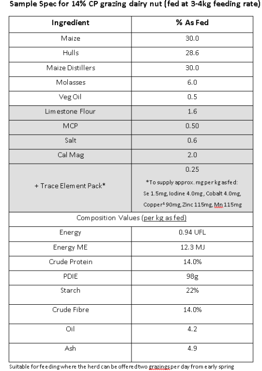 - The 16% CP ration may be more relevant for herds that may feed silage for longer e.g. heavy soils farms (Suitable for feeding where the herd may be limited to 1 grazing per day at times in early spring)