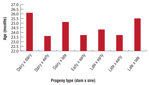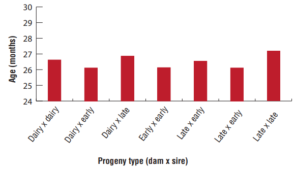 Age at slaughter for steers and heifers in 2021 are given in Figures 1 and 2. This chart shows that most steer breed crosses have an average slaughter age of 26 to 27 months and heifers in their 23-26 month.