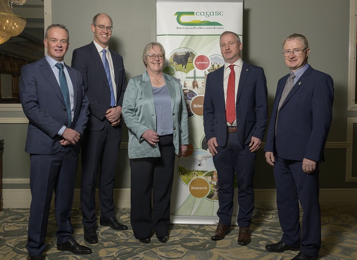 Pictured at the Upland Farming and Landscape Management Symposium are: Paul McHenry, Head of the Knowledge Advisory Service in CAFRE; Dr. Stan Lalor, Director of Knowledge Transfer in Teagasc; Dr. Catherine Keena, Countryside Management Specialist with Teagasc; Vivian Silke, Regional Manager, Mayo, Teagasc; Professor Frank O’Mara, Director of Teagasc.