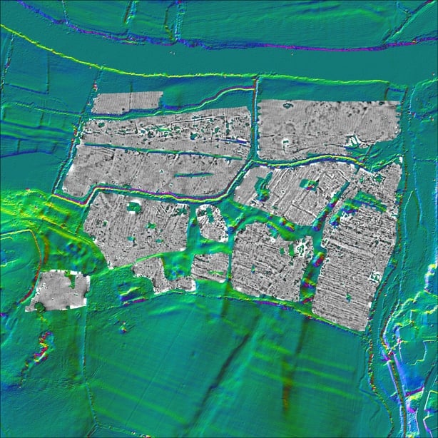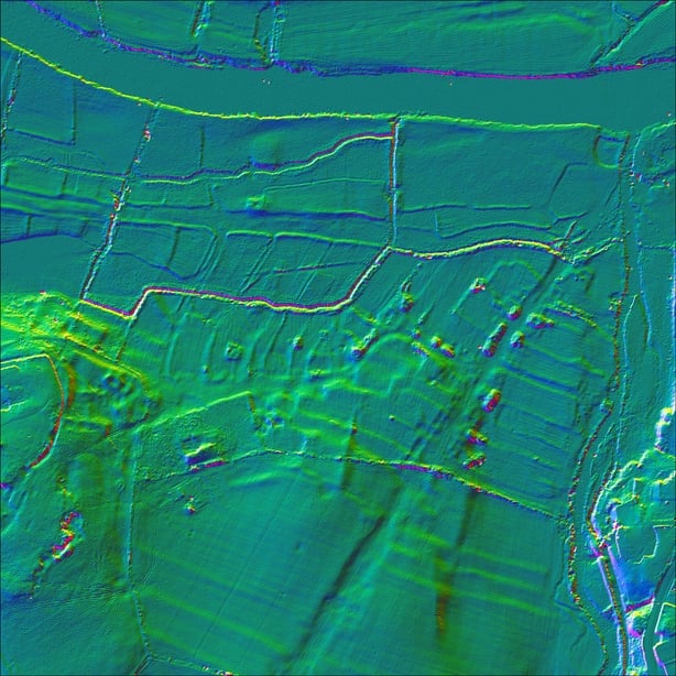 In the image, we show LIDAR imagery taken from a helicopter-mounted sensor in 2007, showing the area of Newtown. While some of the traces are visible in the landscape (see above photo), LIDAR gives a much clearer image of how the village of Newtown may have looked.