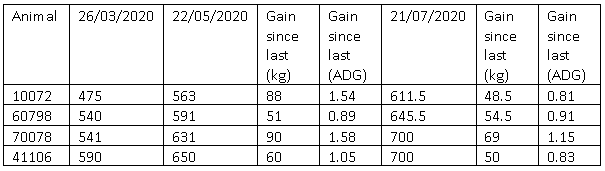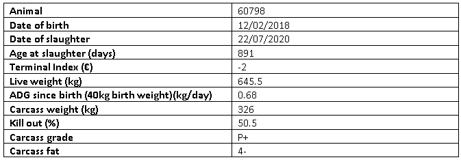 Below highlights the performance of four steers slaughtered off the farm during the summer months, with images and weights taken immediately before animals were transported for slaughter, while carcass images were taken in the slaughter plant.