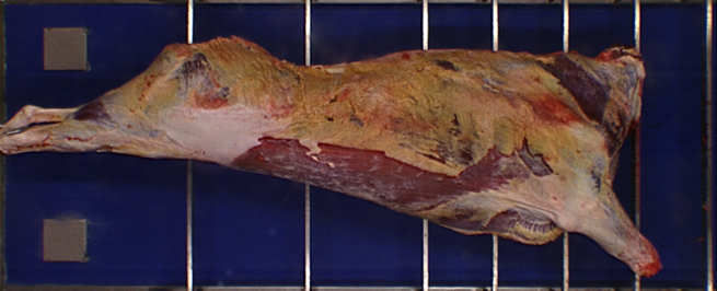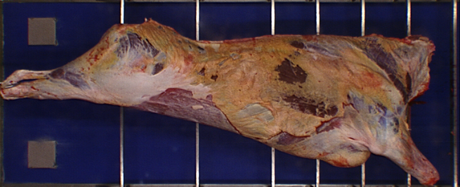 Although weighing 700kg prior to slaughter, 70078 was another steer to produce a P+ grade carcass. Again, like 60798, this steer was lacking carcass width and was narrow across both the hips and the shoulder. The width between both the front and hind legs is a good indicator on an animal’s ability to carry meat and, as can be seen from the images below, 70078 was very narrow set.