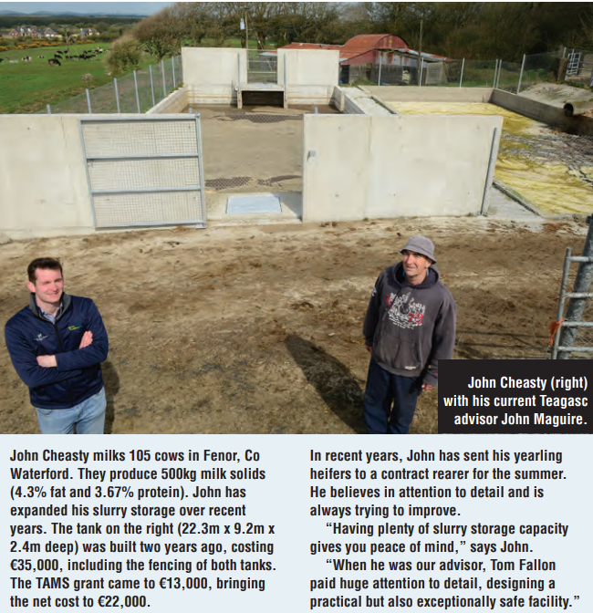 Tom Fallon, Teagasc Farm Buildings & Infrastructure Specialist has tips for applying for TAMS grant aid for slurry storage here. He advises when building new facilities to look beyond meeting the minimum storage requirements as many farms require extra storage. He features a TAMS grant farm example