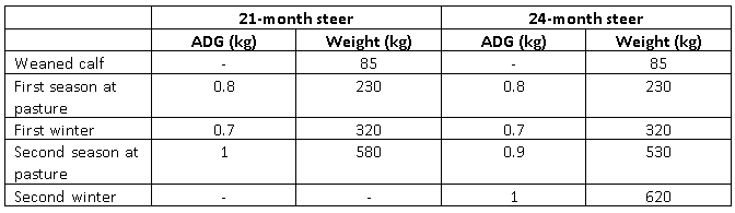 Table 1. Target weight gain for Holstein Friesian steers under 21 and 24-month production systems