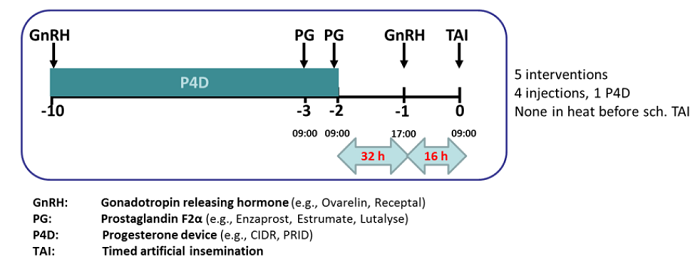 Figure 1. Outlines a fixed time AI synchronisation protocol for late-calving cows.