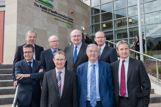 Pictured at the offical opening of the Paddy O'Keeffe Innovation Centre at Teagasc Moorepark, Fermoy, Co Cork are Michael Berkery, Chairman FBD, Carlos Moedas, EU Commissioner for Research Science & Innovation, Phil Hogan, EU Commissioner for Agriculture & Rural Development, Simon Coveney, Minister for Agriculture, Food & the Marine & Dr Noel Cawley, Chairman Teagasc.