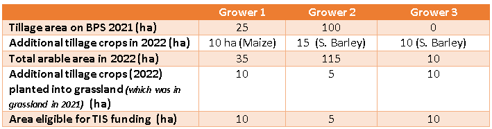 - The farmer claiming the TIS must show the increased tillage area on their 2022 BPS application